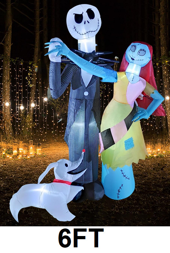 Nightmare Before Christmas Inflatable with Jack Skellington Sally and Zero - 6ft - black/yellow/blue