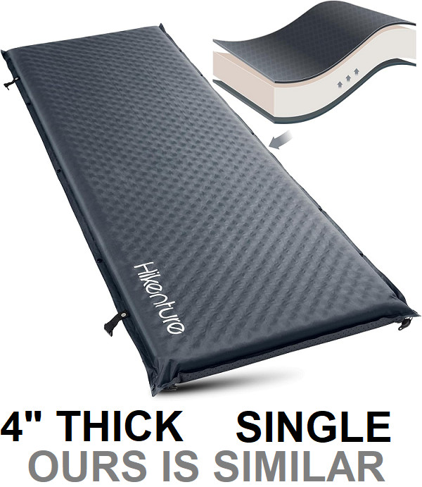 Hikenture 4" Thick Self Inflating Sleeping Pad With Carrying Case - single - Grey - (Model: 1093-B2)