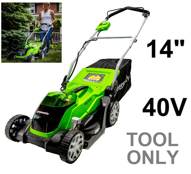 Greenworks Battery Powered Cordless Lawn Mower *tool only* - 40V - 14" - Black/Green (Model: LMF334)