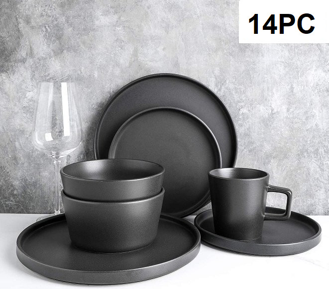 14PC STONE LAIN STONEWARE DINNERWARE SET, MICROWAVE & DISHWASHER SAFE - MATTE BLACK (MODEL: BLB0193)