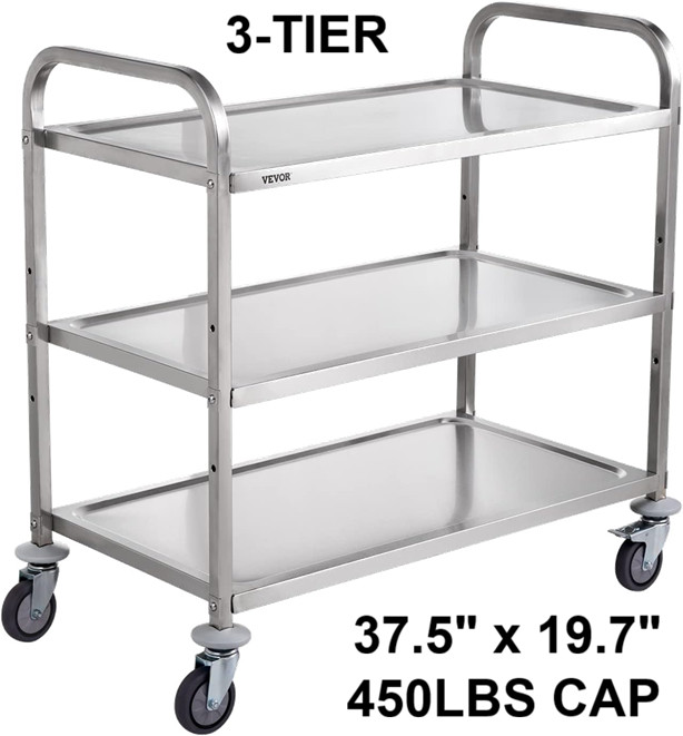 3 TIER Wire Storage Rolling Cart with 450lbs capacity 36.5" x 19.7" stainless steel (model: k-ft001)
