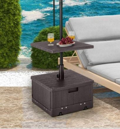 costway Outdoor Fillable Umbrella Base with Tray and Weighted Bag, 175lbs - BROWN (model: np11093CF)