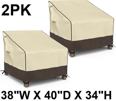 2PK MR. COVER Moisture-proof & UV-protection Patio Chair Covers - 38"W x 40"D x 34"H - BROWN & KHAKI