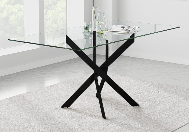 NIERN RECTANGLE tempered glass dining table with metal legs - 47" x 27" - black (model:aws-021-2-1 )
