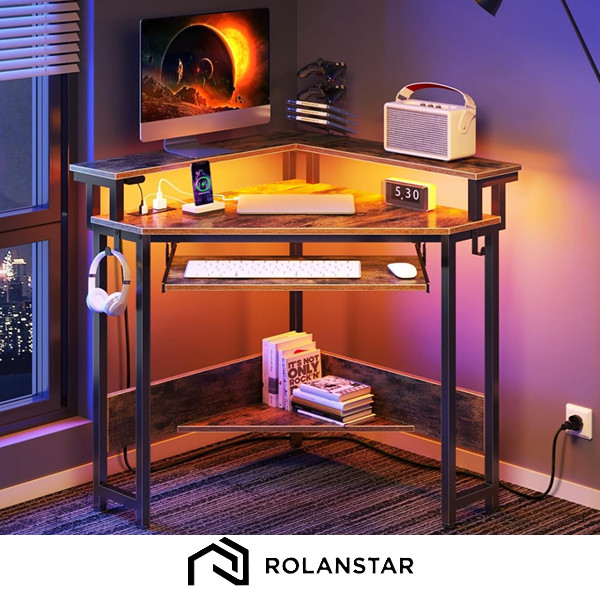 Rolanstar small triangle Corner computer Desk - 44.5" x 34.5" - Rustic Brown (model: CPT024-yw80-rr)