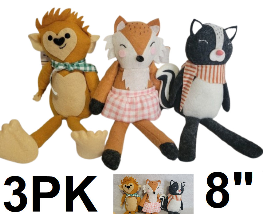 3pk bullseye playground mini weighted felt forest animal friends for shelf decor - 8" - multicolored