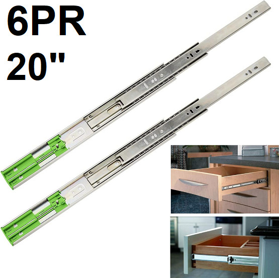 6pr coralov soft close full extension side mounted drawer slides - 20" - silver (model: con-slides3)