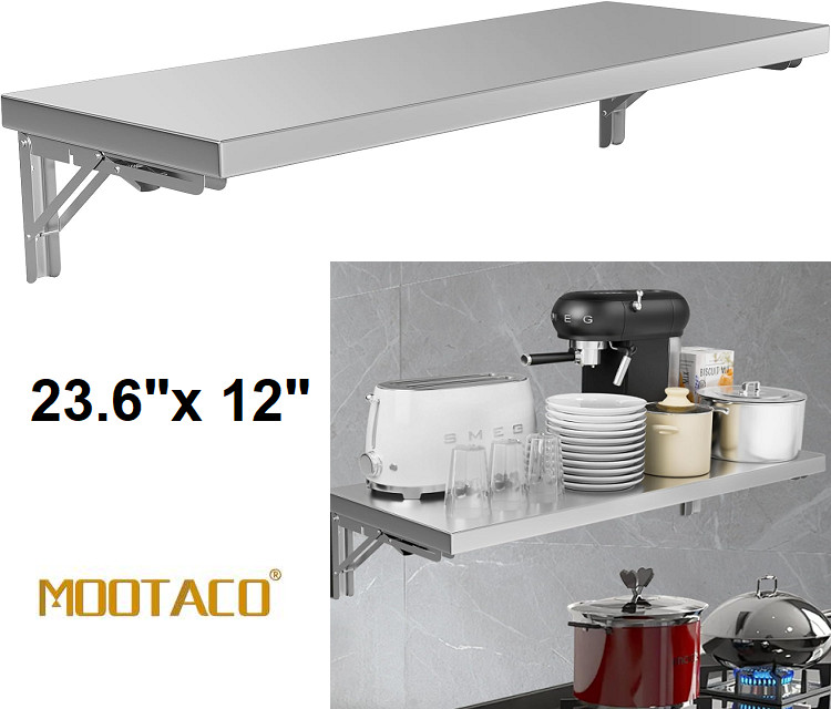 mootaco Folding Wall Shelf - 23.6" x 12", Heavy Duty, Wall Mount Floating Shelving - Stainless Steel
