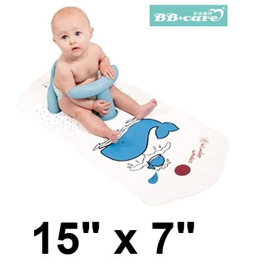 BBCARE NON-SLIP SAFETY BATH SEAT WITH EXTRA LONG BATH MAT & hot spot feature - 15" x 7" - blue whale