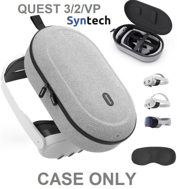 SYNTECH HARD CARRYING TRAVEL CASE FOR QUEST 3/QUEST 2/ VISION PRO VR HEADSETS- 14" X 9" X 4.5"- GREY