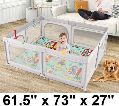 Baby Playpen with Mat Breathable Mesh toys and balls - 61.5" x 73" x 27" - grey (Model: BB6256mt-gr)