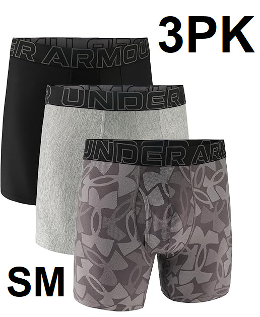 3pk men's Under Armour Performance Tech Boxerjock Boxer Briefs - small - black/grey (STYLE: 1383879)