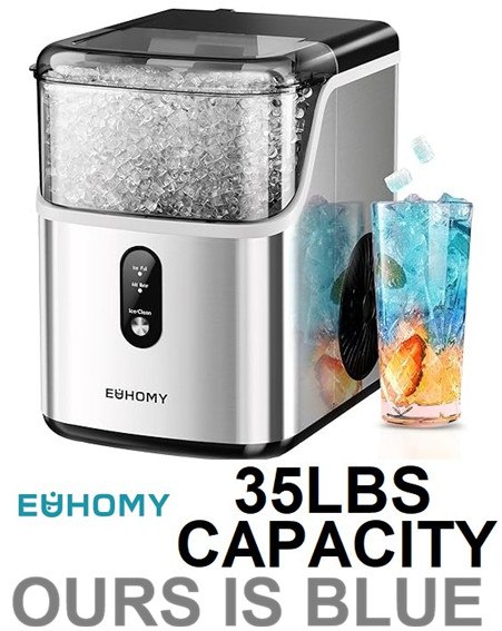 EUHOMY Pearl L1 Portable Nugget Ice Maker Countertop - 35lbs capacity - blue (model: IM013-NSI-CAEH)