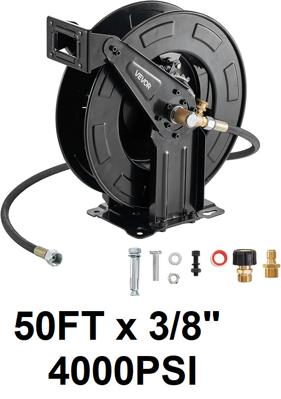 Vevor pressure washer hose reel retractable heavy duty reel - 50ft x 3/8" - Black (Model: NTG-SA15B)