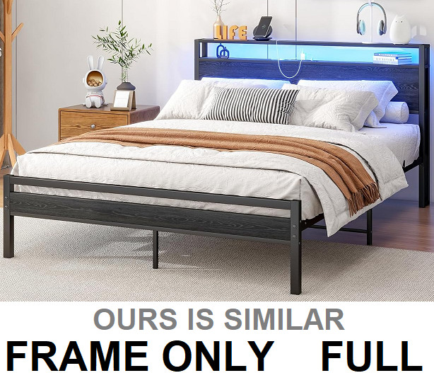 HOJINLINERO METAL BED FRAME with LED LIGHTS & POWER OUTLETS - full - black (MODEL: bf-1070f/g(pc+dd)