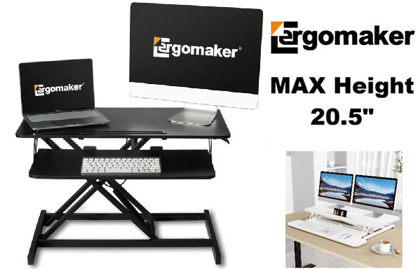 Ergomaker Adjustable Height Sit stand Desktop Workstation - Max 20.5" Height - White (MODEL:DC01-32)