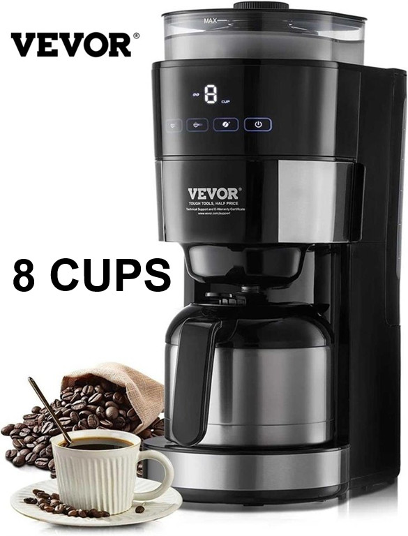 vevor coffee maker with thermal carafe for whole beans or grounds- 8cup - black (model: cm1131af-ul)