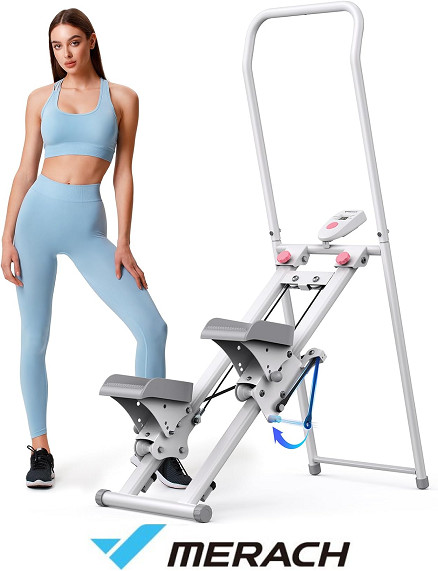 merach folding vertical stair climber with adjustable pedals and handlebars -white (model: MR-2438)