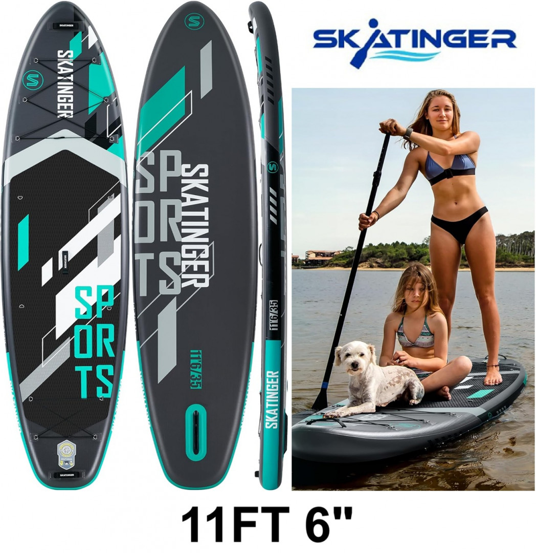 SKATINGER SUPER WIDE INFLATABLE STAND UP PADDLE BOARD WITH ACCESSORIES - 11FT 6" x 35" - sports gray
