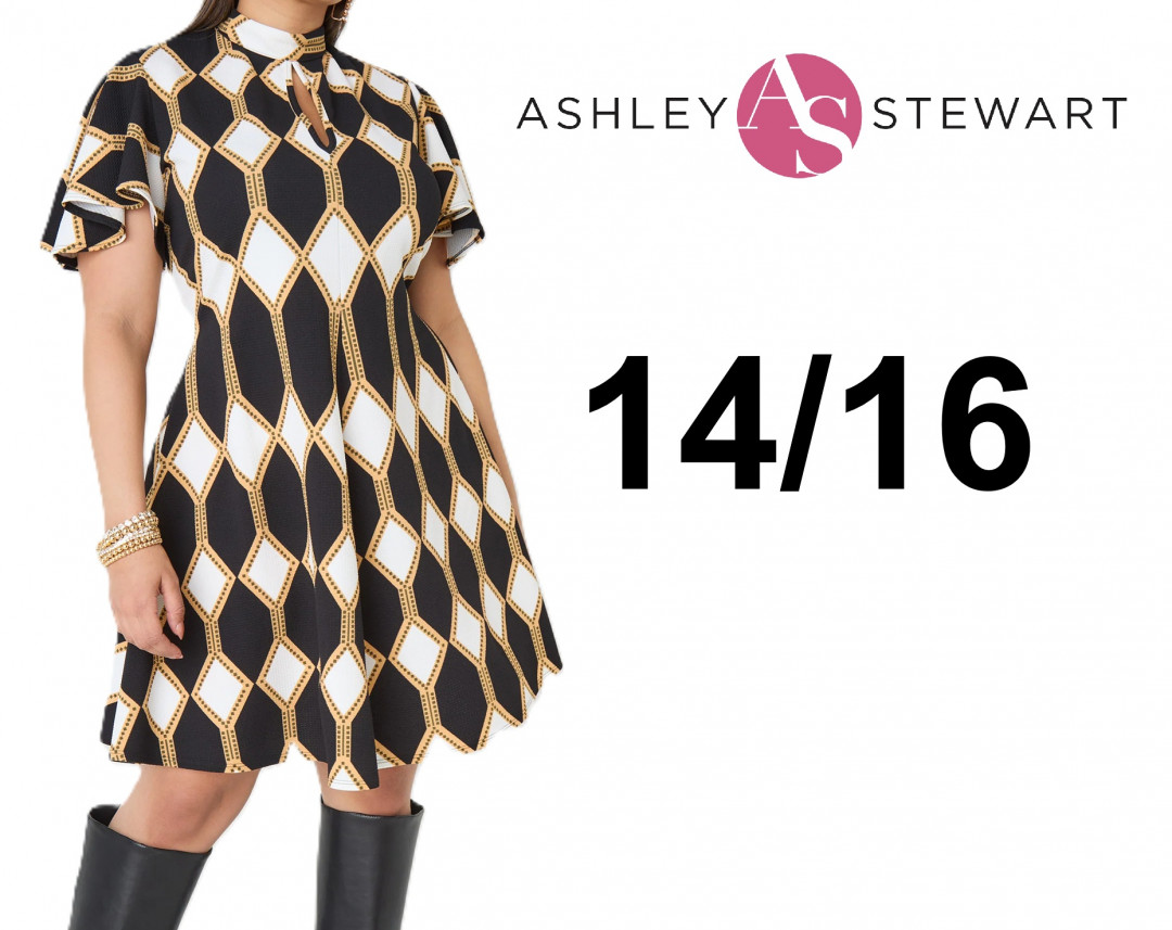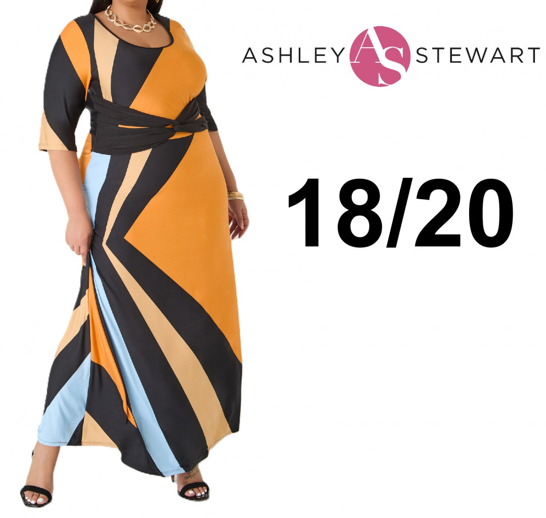 Women's Ashley Stewart Flounced Floral Sheath Dress - Size 18/20 - Blue/Pink/Orange (Style: 26073DP)