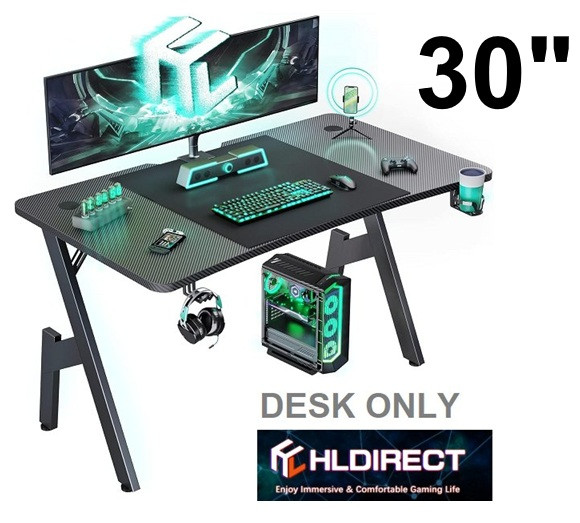 HLDIRECT Home Office Ergonomic PC/Gaming Desk with Carbon Fiber Surface and cup holder - 30" - black