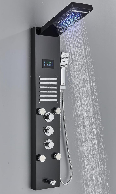 Votamuta Wall Mounted LED Rainfall Waterfall Shower Head System with Rain Massage Jets - matte black