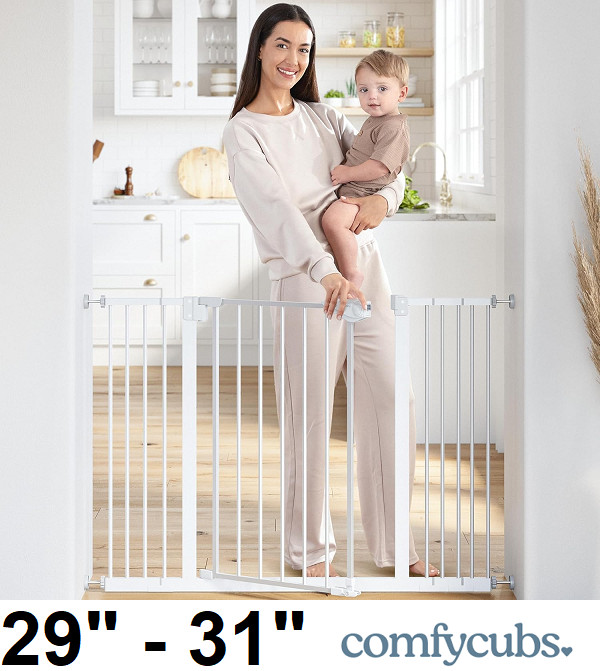 Regalo Home Accents Extra Wide Walk Thru Baby Gate - 30" to 42" - Black Cherry Wood (model: 0310DS)