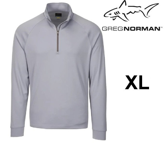 men's greg norman Leaderboard Shark Quarter Zip RIBBED Golf Pullover - large - Grey (Style: 1864568)