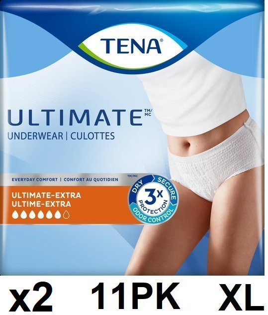 10PK UNISEX ADULT'S TENA ULTIMATE EVERYDAY COMFORT ULTIMATE-EXTRA ABSORBENCY UNDERWEAR - 2XL - WHITE