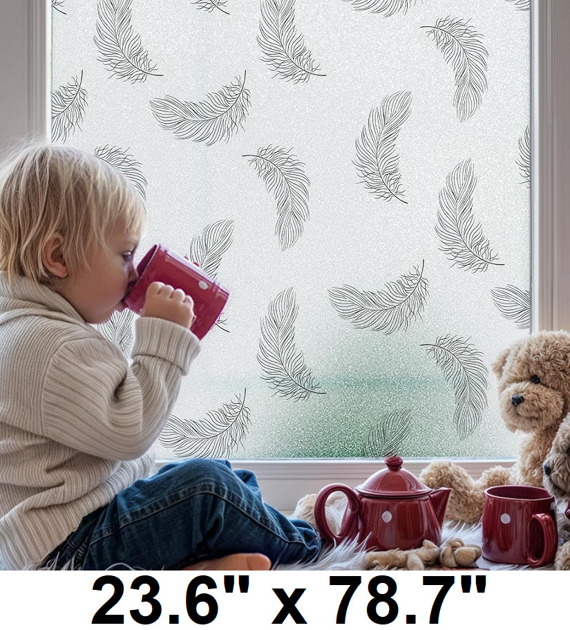 DUOFIRE SEMI-FROSTED PRIVACY WINDOW FILM FOR NURSERY, BEDROOM, LIVING ROOM - 23.6" X 78.7" - FEATHER