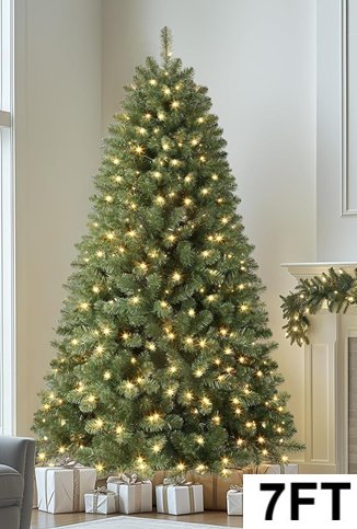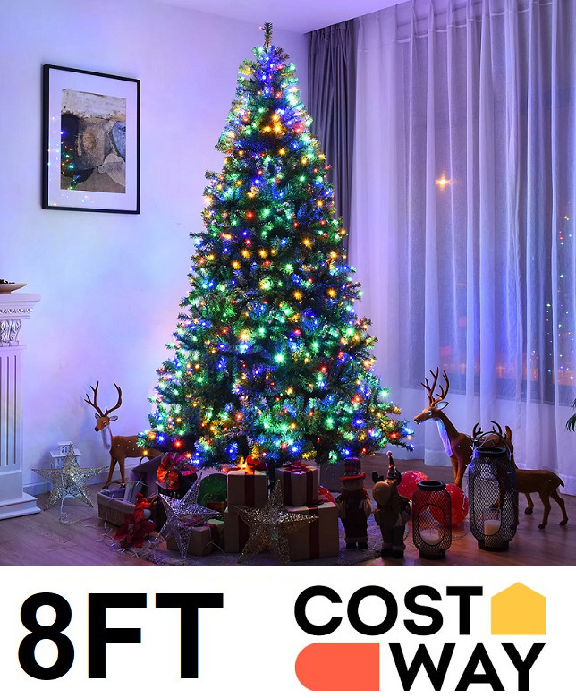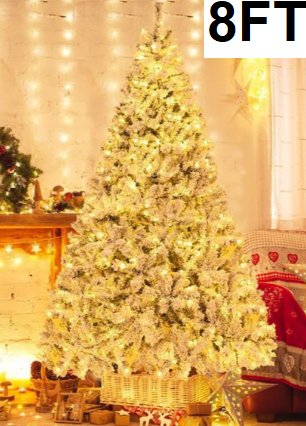 Costway Pre-Lit Christmas Tree Quick Shape Flocked Décor with 600 LED Lights - 8FT (model:CM24566US)