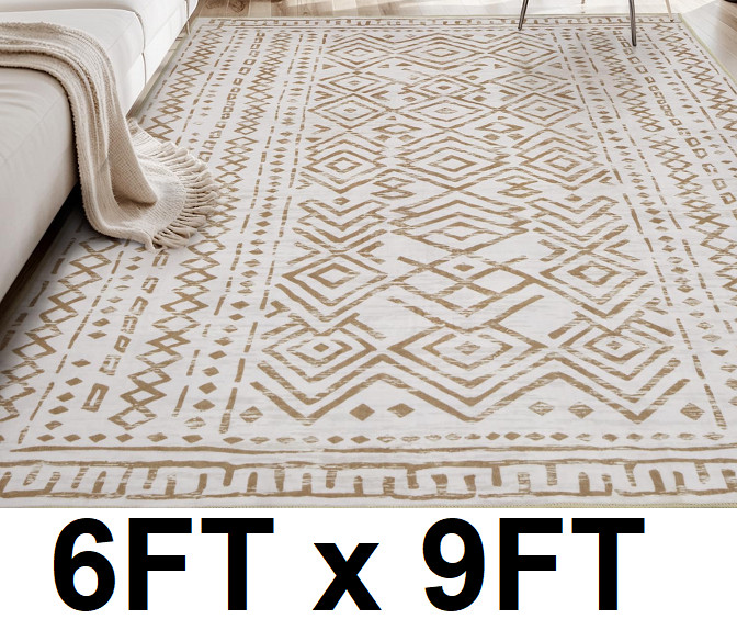 WASHABLE NON-SLIP Boho Moroccan PATTERNED Area Rug - 6FT X 9FT - BROWN/WHITE (MODE: CA-JG-BROWN-6X9)