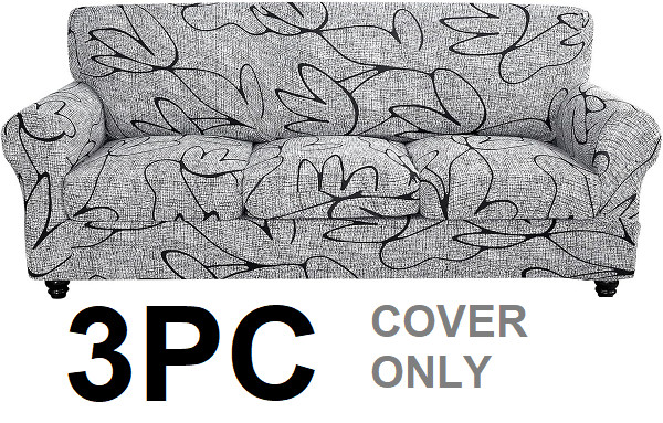 3pc SearchI Stretch Printed Sofa/ Couch cushion Slipcover with 3 Separate Cushion Cover - black/grey