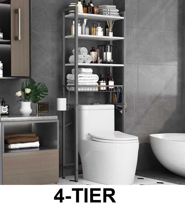 UDEAR 3 Shelf Bathroom Over the Toilet Rack Storage Organizer Stand - 25.98" x 9.8" x 65.35" - Black