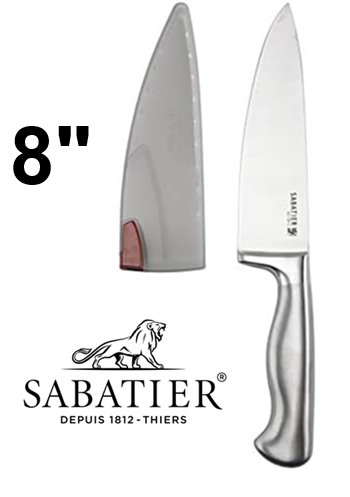 Sabatier Forged Stainless Steel Chef knife with Edgekeeper Self-Sharpening Blade Cover - 8" - Silver