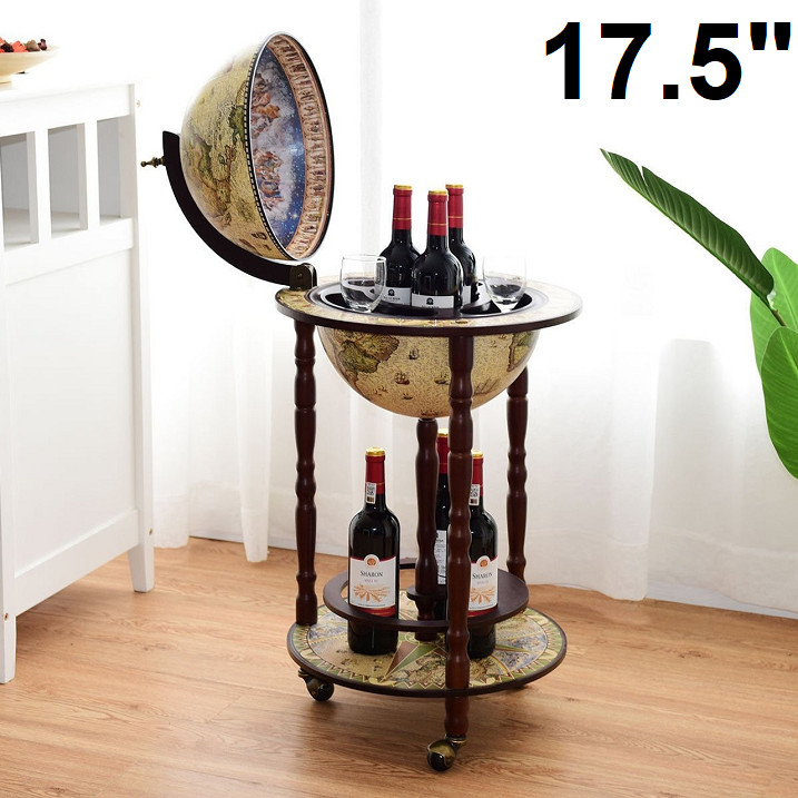 SAFSTAR 17.5" Italian Style Wooden Globe Liquor Bottle Wine Rack WITH STORAGE SHELF (MODEL: HW58775)