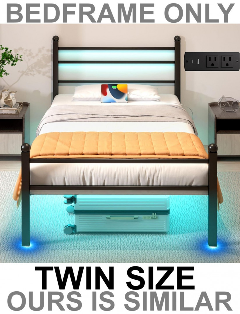metal bed frame with led lights and charging station - twin size - black - (model: 852e-a(pc+dd)-bk)