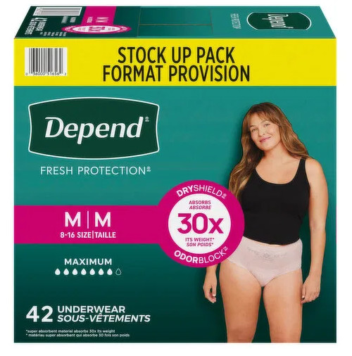 42PK WOMENS DEPEND fresh protection UNDERWEAR - MAXIMUM ABSORBENCY - MEDIUM - BLUSH (MODEL: 5165602)