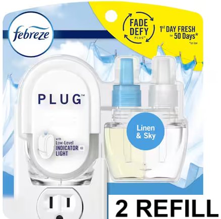 febreeze wall plug warmer with dual air freshener oils - Sky and Linen Scent - 26ml - with 2 refills