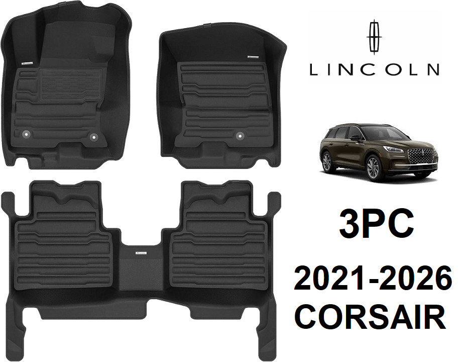 3pc tuxmat all weather custom car mats for 2021 to 2026 lincoln corsair models - black( model: 8750)
