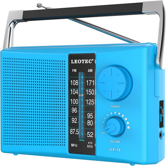 LEOTEC Portable AM FM Radio Battery Operated or AC Power with Best Reception - BLUE (model: lt-1808)