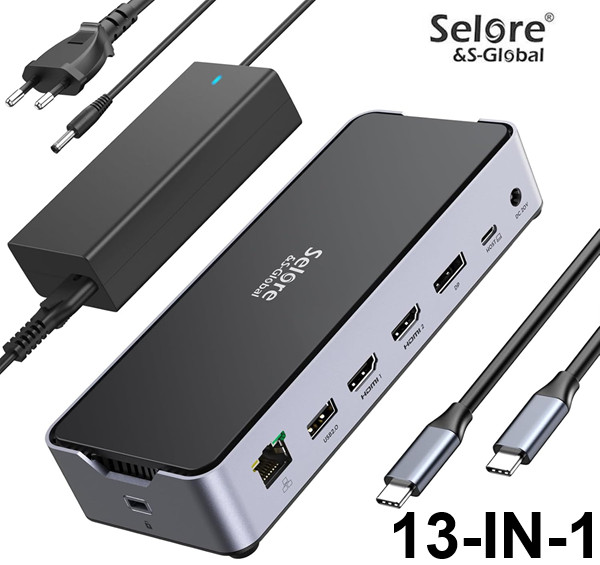 selore 13-in-1 usb-c docking station | Dual Monitor | ethernet | 10gb usb  - grey - (model: sedk1407)