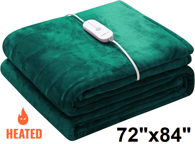 wapaneus electric heated blanket with 3 heating levels and auto shut off - 72" x 84" - vintage green