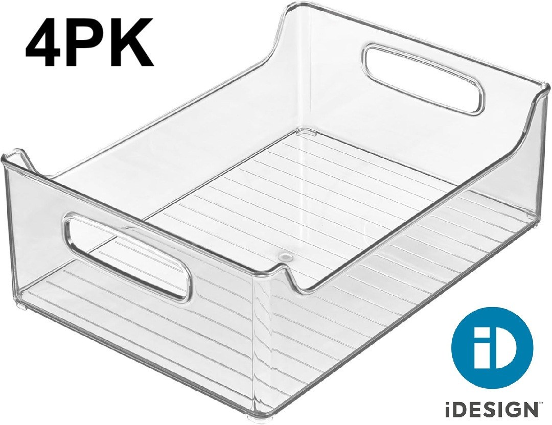 4PK iDesign Plastic Fridge and Freezer Storage Organizer Bin with Handles - 10" X 12.2" X 5" - CLEAR