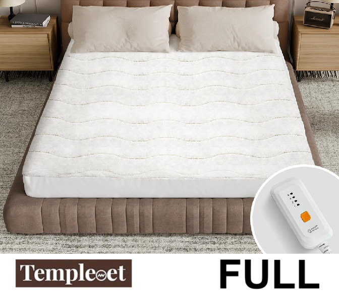 Templewet single Control Heated sherpa fleece Mattress Pad - 4 Heat Settings - full/15" Deep - white