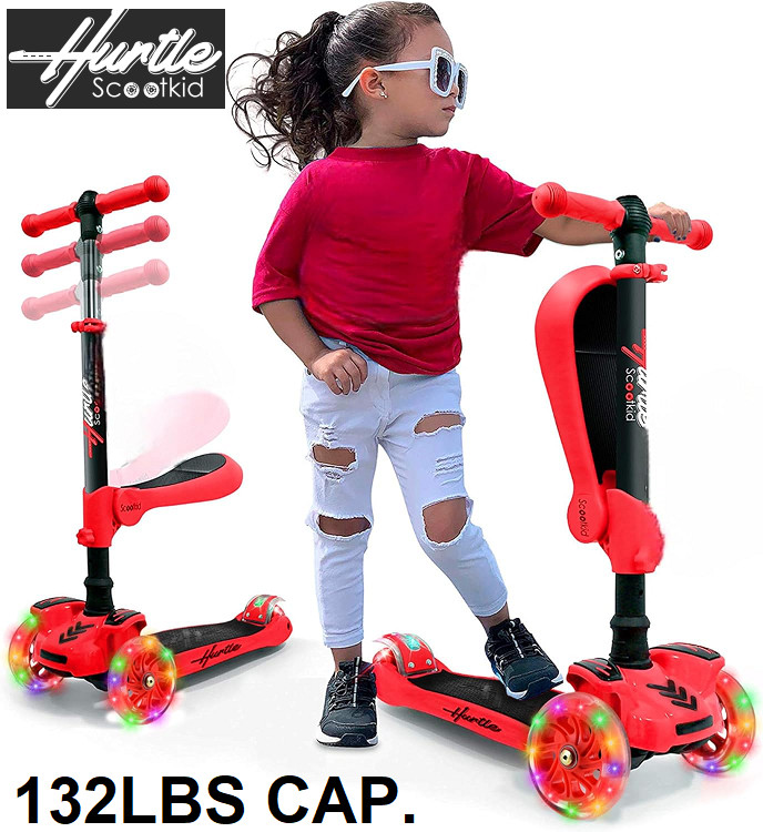 BELEEV 3-WHEEL SCOOTER WITH LIGHT-UP LED WHEELS & ADJUSTABLE HEIGHT - RED/SUPER PANDA (MODEL: BE063)