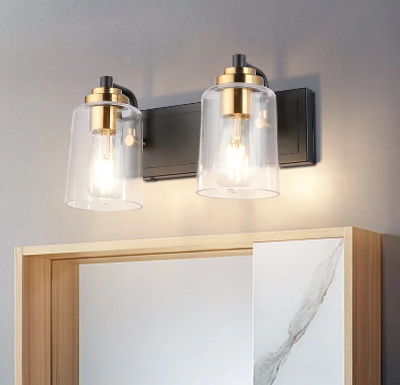 SOLFART Vintage Wall Lighting Over Mirror Bathroom Vanity Light Fixtures - BLACK/GOLD (MDOEL: S8580)