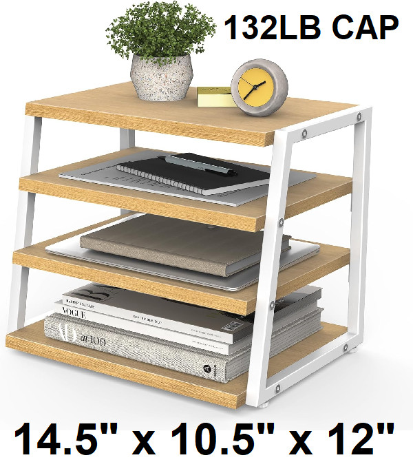 Fenge 4 tier Desk Organizer - 14.5" x 10.5" x 12" - 132lb capacity - wood/white - (model: G05B4043C)