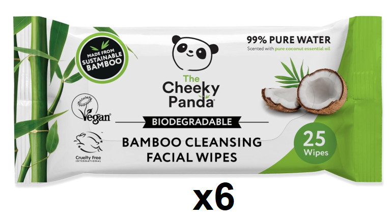 6 (25pk) The Cheeky Panda Bamboo Make-Up Wipes - Super Gentle & Sustainable - With Coconut Fragrance