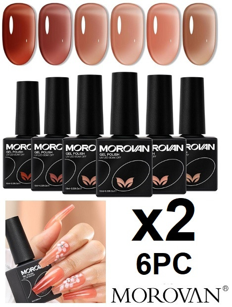 2 (6PC) morovan professional jelly gel nail polish kit - assorted warm tone colours (model: gs01-a6)